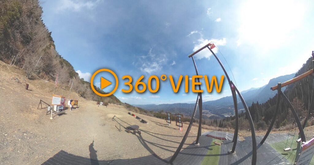 若宮造次郎公園の「キャンプサイト」「天空のブランコ周辺」「駐車場」などを360°カメラで撮影しました。