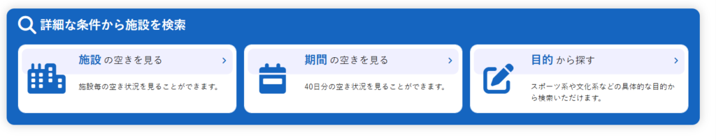 ※「期間の空きを見る」や「目的から探す」から予約を進めても、方法は同じです。