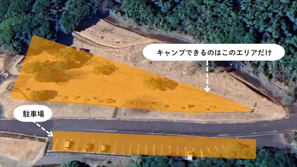 1. キャンプができるのは、トイレや炊事棟がある広場だけです。