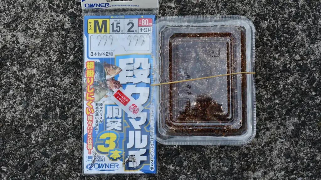今回、釣り初心者の僕が御鉾ヶ浦で使った仕掛けとエサは以下の通りです。